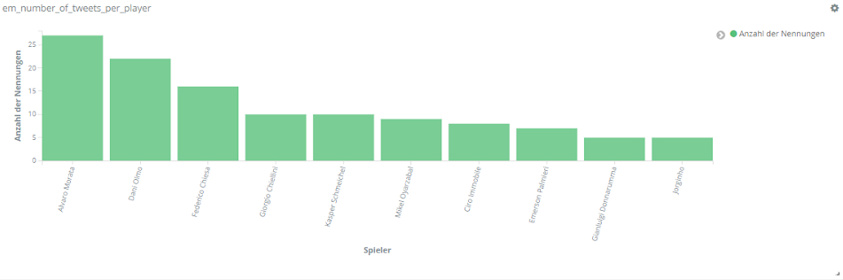 Italien ist der Europameister der EM 2020. Der Weg dorthin war allerdings nicht einfach für die Italiener. Wie schon im Halbfinalspiel gegen Spanien siegte Italien auch gegen England erst im Elfmeterschießen. Sowohl in den 90 Minuten regulärer Spielzeit als auch in der Nachspielzeit konnte keine der beiden Mannschaften das Geschehen dauerhaft dominieren. Auch bei einer Einzelbetrachtung der Spieler fiel keiner der Spieler durch überragende Aktionen auf. Entsprechend selten werden die Spieler beider Teams während des Spiels auf Social Media erwähnt.