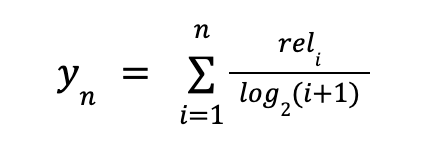 An dieser Stelle kommt der Discounted Cumulative Gain (DCG) ins Spiel. Hier erscheint die Position, an der das Suchergebnis steht, wieder als Teil des Nenners eines Quotienten. Im Gegensatz zur Average Precision wird hier aber außerdem logarithmiert: