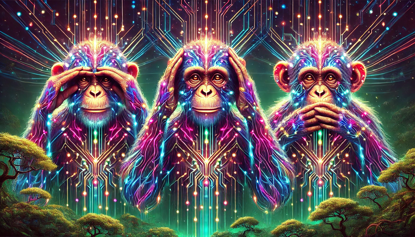 Multimodale Systeme haben trotz ihrer Leistungsfähigkeit auch Schwächen. Sie erinnern dabei an das Bild der „Drei Affen“. Jedes Modul – ob für Text, Bild oder Audio – nimmt nur einen Sinneskanal wahr. Anstatt die Welt in ihrer Gesamtheit zu erfahren und die komplexen Beziehungen zwischen verschiedenen Modalitäten zu lernen – wie es Menschen tun – sind diese Systeme darauf beschränkt, "miteinander zu sprechen". Das bedeutet, sie lernen, Repräsentationen einer Modalität in eine andere zu übersetzen, ohne jedoch ein tiefes Verständnis der zugrundeliegenden Zusammenhänge zu entwickeln.