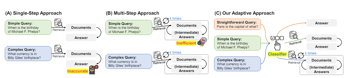 In der Forschungsarbeit "Adaptive-RAG: Learning to Adapt Retrieval-Augmented Large Language Models through Question Complexity" argumentieren die Autoren, dass Anfragen an ein LLM unterschiedlich komplex sind und daher unterschiedliche Lösungsstrategien benötigen.