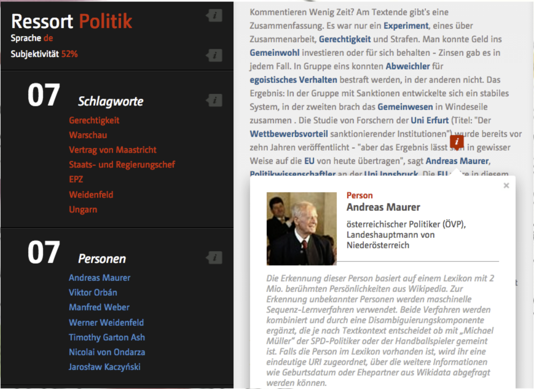 Der Weser Kurier setzt das NLP-Framework TXTWerk von ontolux zur Verbesserung der Entitätenerkennung sowie zur automatischen Erstellung von Themenseiten ein. TXTWerk wurde hierfür durch spezifische Entitäten des Weser Kuriers ergänzt.